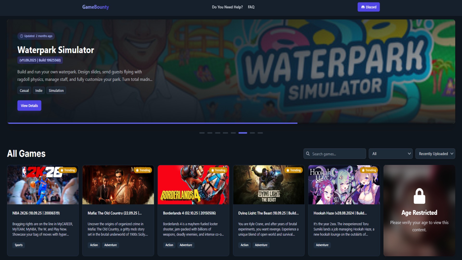 GameBounty, A piracy site offering a wide range of PC games across multiple genres. It provides an organized library with regular updates, making it easy for users to discover and download the latest titles.